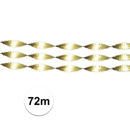 3x feest/verjaardag versiering slingers in de kleur goud, lengte 24 meter, gemaakt van crepe papier. Deze papieren feestslinger is ca. 24 meter lang en ca. 15 cm breed. Brandvertragende feestartikelen. Versieringen in de kleur goud voor thema decoraties.