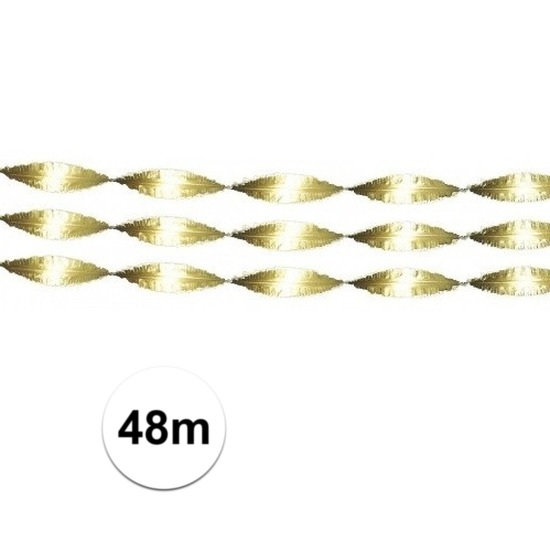2x feest/verjaardag versiering slingers in de kleur goud, lengte 24 meter, gemaakt van crepe papier. Deze papieren feestslinger is ca. 24 meter lang en ca. 15 cm breed. Brandvertragende feestartikelen. Versieringen in de kleur goud voor thema decoraties.