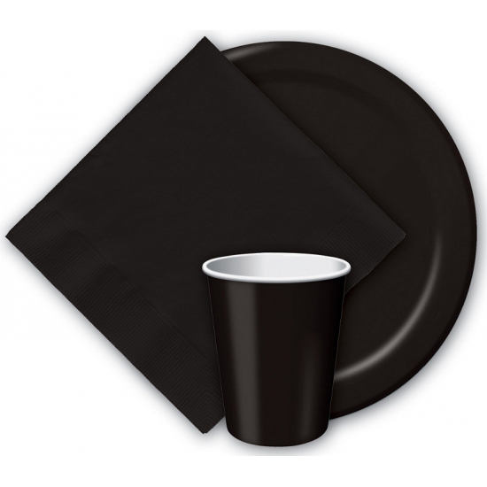 Kartonnen feestbordjes in het zwart van 23 cm. 40x stuks kartonnen verjaardag borden in het zwart. De bordjes hebben een diameter van ongeveer 23 cm. Halloween thema wegwerpborden van karton. Tafeldecoratie feestartikelen en versiering.