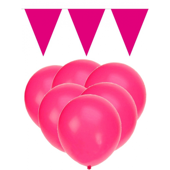 Roze decoratie set met 15 roze ballonnen en 2 roze vlaggenlijnen. Roze versiering set: 15 roze ballonnen van ongeveer 27 cm (geschikt voor helium of lucht) en 2 roze vlaggenlijnen van 10 meter. , Dit artikel bestaat uit:, 2x Party Vlaggenlijn puntvlaggetjes – kunststof – fuchsia – 10 meter – Slinger – versiering, 1x Bellatio Decorations ballonnen – 15x stuks – roze – 27 cm – verjaardag – feestartikelen