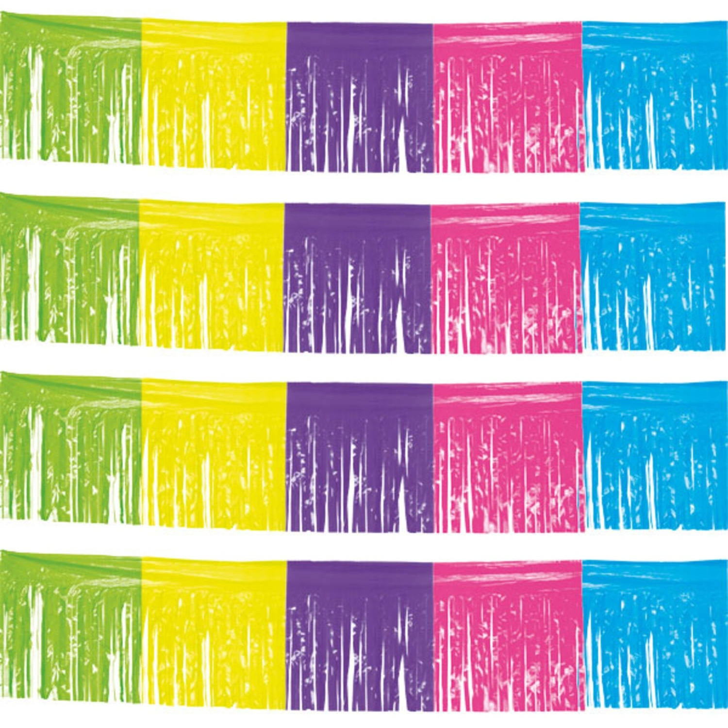 4x gekleurde franje slinger 10 meter. Voeg een sprankelende feestelijke touch toe aan je evenement met deze gekleurde franje slinger! De slinger is 10 meter lang en bestaat uit plastic franjes in verschillende vrolijke kleuren, ideaal voor elke gelegenheid zoals verjaardagen, feestjes of carnaval. Een perfecte manier om je ruimte snel om te toveren in een kleurrijk feestdecor!