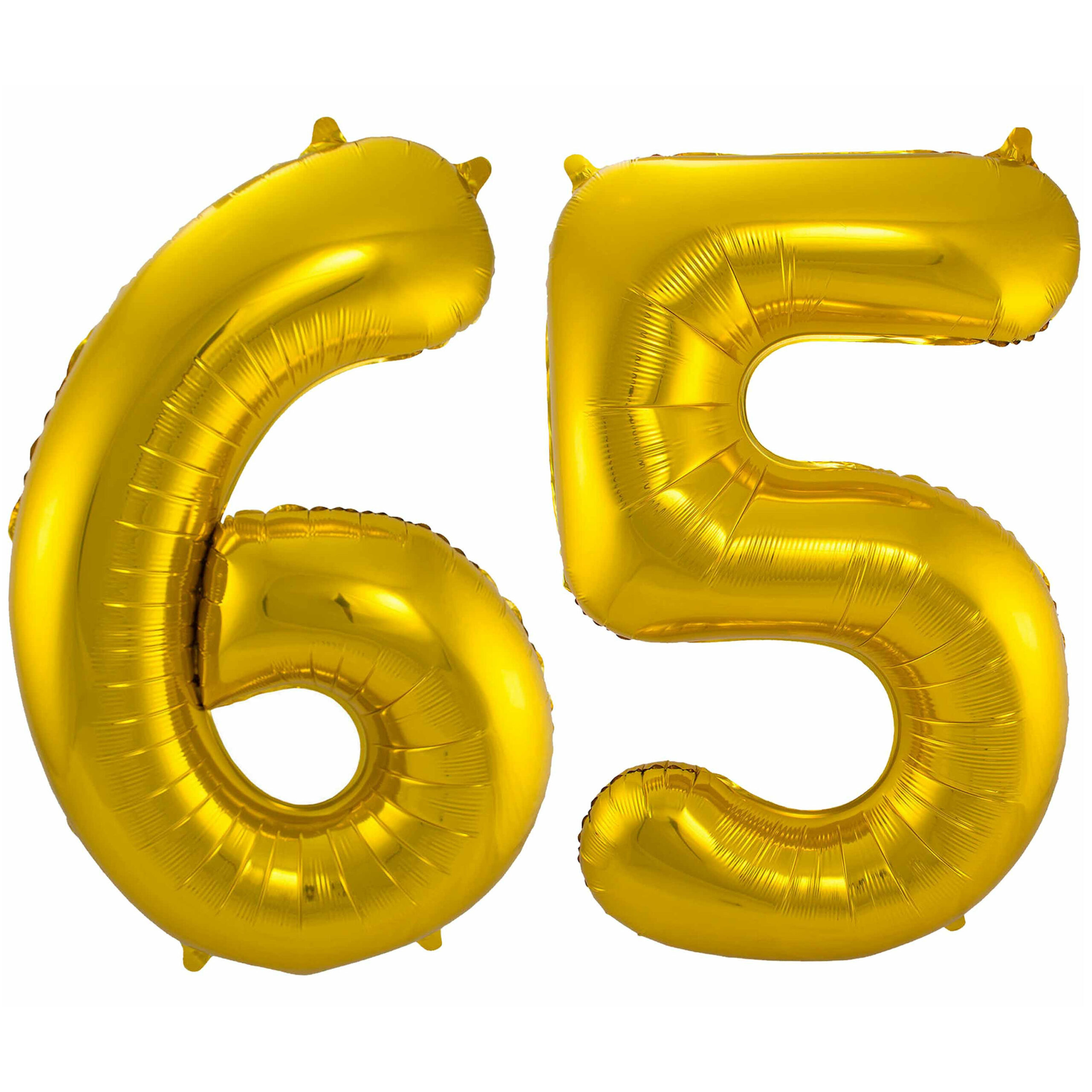 Grote folie ballonnen cijfer 65 in het goud 86 cm