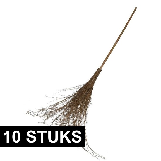 10x heksen bezem 96 cm. Maak je heksenkostuum compleet met deze klassieke houten heksenbezem van 96 cm lang. Perfect geschikt voor kinderen en volwassenen tijdens Halloween, carnaval of verkleedfeestjes. Deze bezem is ook ideaal als decoratief item voor een griezelige sfeer in huis, tuin of feestlocatie.