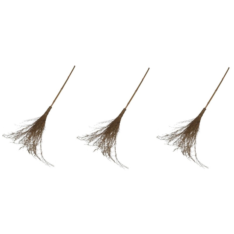 3x heksen bezem 96 cm. Maak je heksenkostuum compleet met deze klassieke houten heksenbezem van 96 cm lang. Perfect geschikt voor kinderen en volwassenen tijdens Halloween, carnaval of verkleedfeestjes. Deze bezem is ook ideaal als decoratief item voor een griezelige sfeer in huis, tuin of feestlocatie.