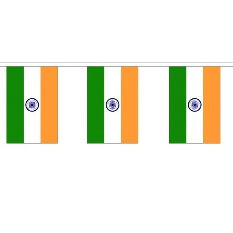 2x polyester vlaggenlijn van India. Stoffen vlaggenlijn van India voor binnen en buiten gebruik. Deze luxe kwaliteit vlaggenlijn is 300 cm lang en heeft 10 vlaggetjes van 22,5 x 15 cm.