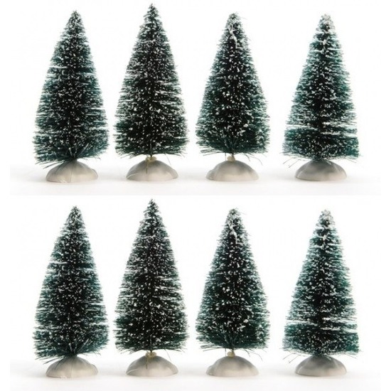 Miniatuur boompjes met sneeuw 8 stuks. Deze decoratie boompjes van kunststof zijn perfect als decoratie in een kerstdorp of winter landschap. De boompjes zijn ongeveer 10 cm incl. voetje. U ontvangt 2 verpakkingen van 4 stuks.