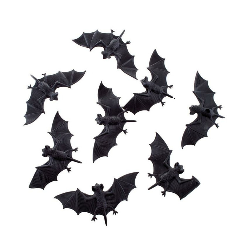 Een set van 24x vleermuizen Halloween dieren, gemaakt van plastic. Afmeting: ca. 10 x 5 x 1cm. Halloween/horror decoratie/versiering enge dieren. Horror en dieren thema.