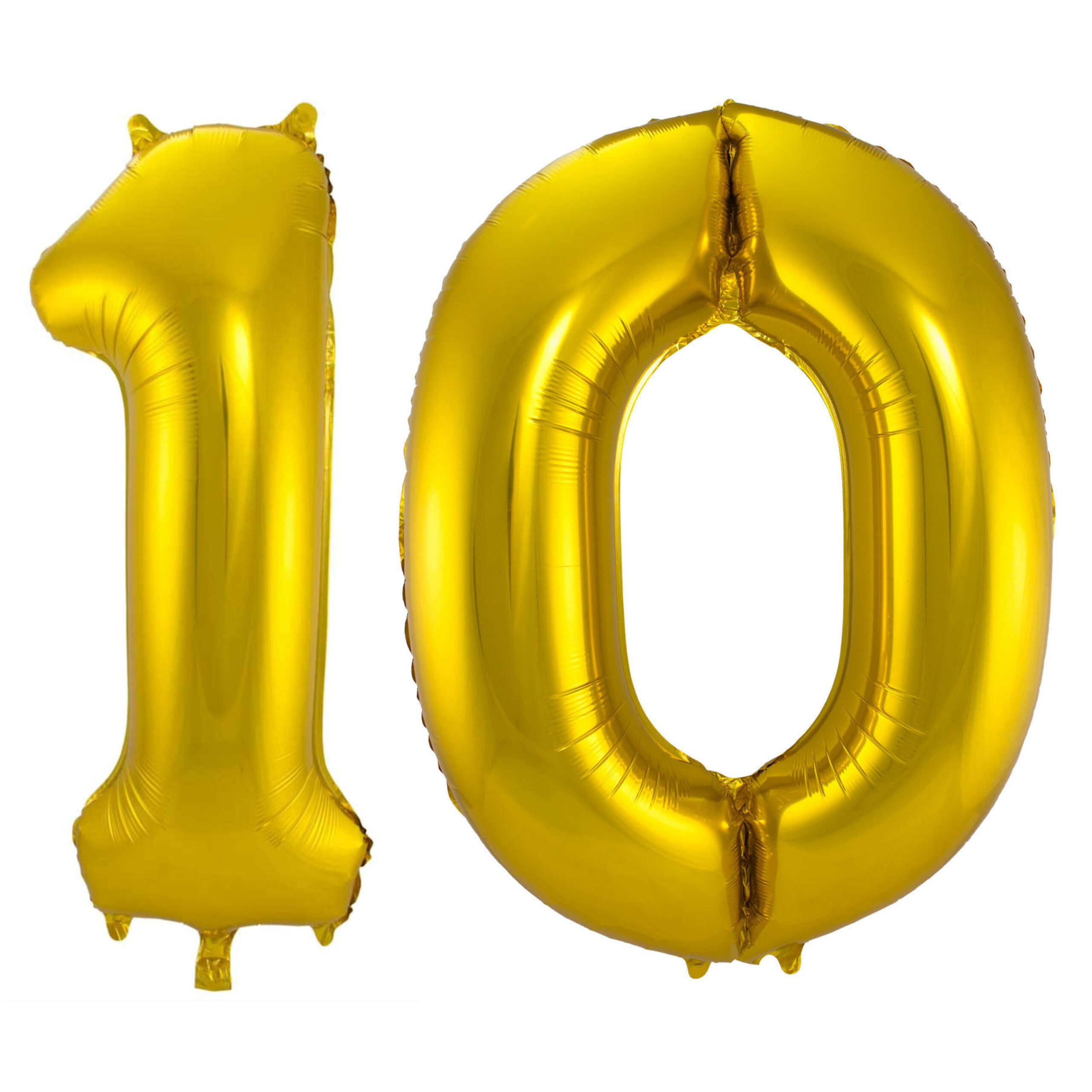 Grote folie ballonnen cijfer 10 in het goud 86 cm. De ballon is opgeblazen ongeveer 86 cm groot. U kunt de ballon heel gemakkelijk met adem/lucht of een ballonnenpomp opblazen. Leeftijd cijfers feestartikelen en verjaardag versieringen. U kunt deze ophangen met een touwtje aan een lusje aan de bovenkant en onderkant(als u ze vult met helium). , Dit artikel bestaat uit:, 1x Folat Verjaardag Leeftijd folieballon – 0 jaar – goud – 86 cm – cijferballon groot, 1x Folat Verjaardag Leeftijd folieballon – 1 jaar – goud – 86 cm – cijferballon groot