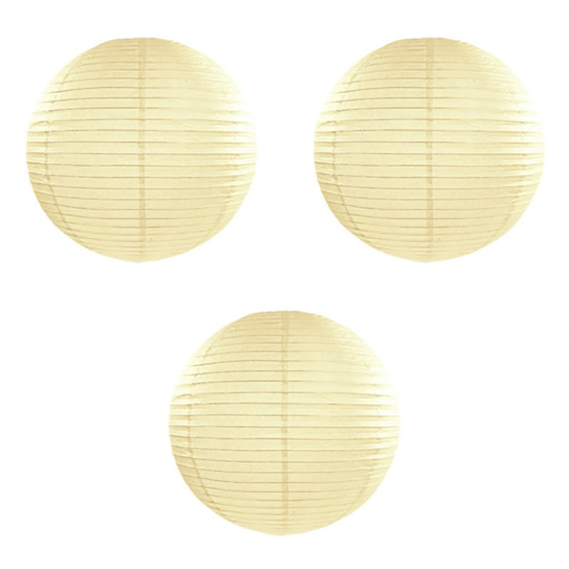 3 stuks luxe bol lampion in het ivoor wit van 50 cm. Bol lampion van ongeveer dia 50 cm groot in de kleur ivoor wit, gemaakt van papier. Voor een zeer leuk effect gebruik deze lampion in combinatie met een LED lampje. In de lampion zit een haakje waar je het LED lampje aan kunt hangen. De lampion is niet brandvertragend. Feestartikelen en versieringen voor binnen en buiten en voor Sint Maarten.