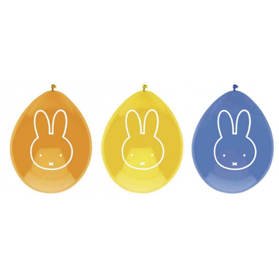 Nijntje ballonnen 18 stuks. Ballonnen set met daarop het hoofd van Nijntje afgebeeld. Per zes stuks verpakt, in 2 of 3 verschillende kleuren. Formaat: 30 cm. Kinderfeestje decoratie/ thema feestje versiering. U ontvangt in totaal 18 ballonnen.