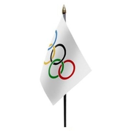 10x olympische Spelen vlaggetje – 15 x 10 cm – polyester – op kunststof stokje – 27 cm. Dit Olympische Spelen vlaggetje heeft een afmeting van 15 x 10 cm en is gemaakt van polyester. Het is bevestigd op een kunststof stokje van 27 cm lang, inclusief een gouden dopje boven de vlag. Ideaal voor sportevenementen, Olympische vieringen en als decoratie voor feestjes.