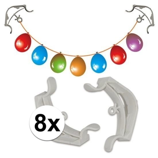 Ophangsysteem klemmen – 8x stuks – voor slingers/ballonnen – Hoekklemmen