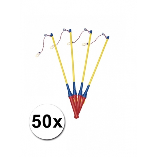 Pakket van 50 stuks elektrische lampionstokjes met lichtje, voordeelset lampion stokjes. het formaat van deze lampionstokjes is ongeveer 40 cm. Werken op 2 AA batterijen (niet inbegrepen).
