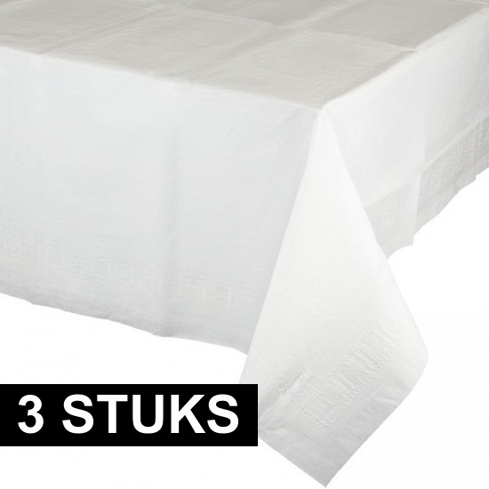 3x tafelkleed voor een feestje, in de kleur wit met afmeting van 274 x 137 cm. Een mooi gekleurd tafellaken voor uw feestelijke tafel! Deze tafelkleden zijn gemaakt van water absorberend papier. Aan de onderzijde is deze met plastic bekleed. Dus ook geschikt voor uw buitenfeesten. Het formaat is ongeveer 274 x 137 cm. Met onze gekleurde servetten, bordjes, bekers en bestek maakt u uw vrolijke feesttafel helemaal compleet.