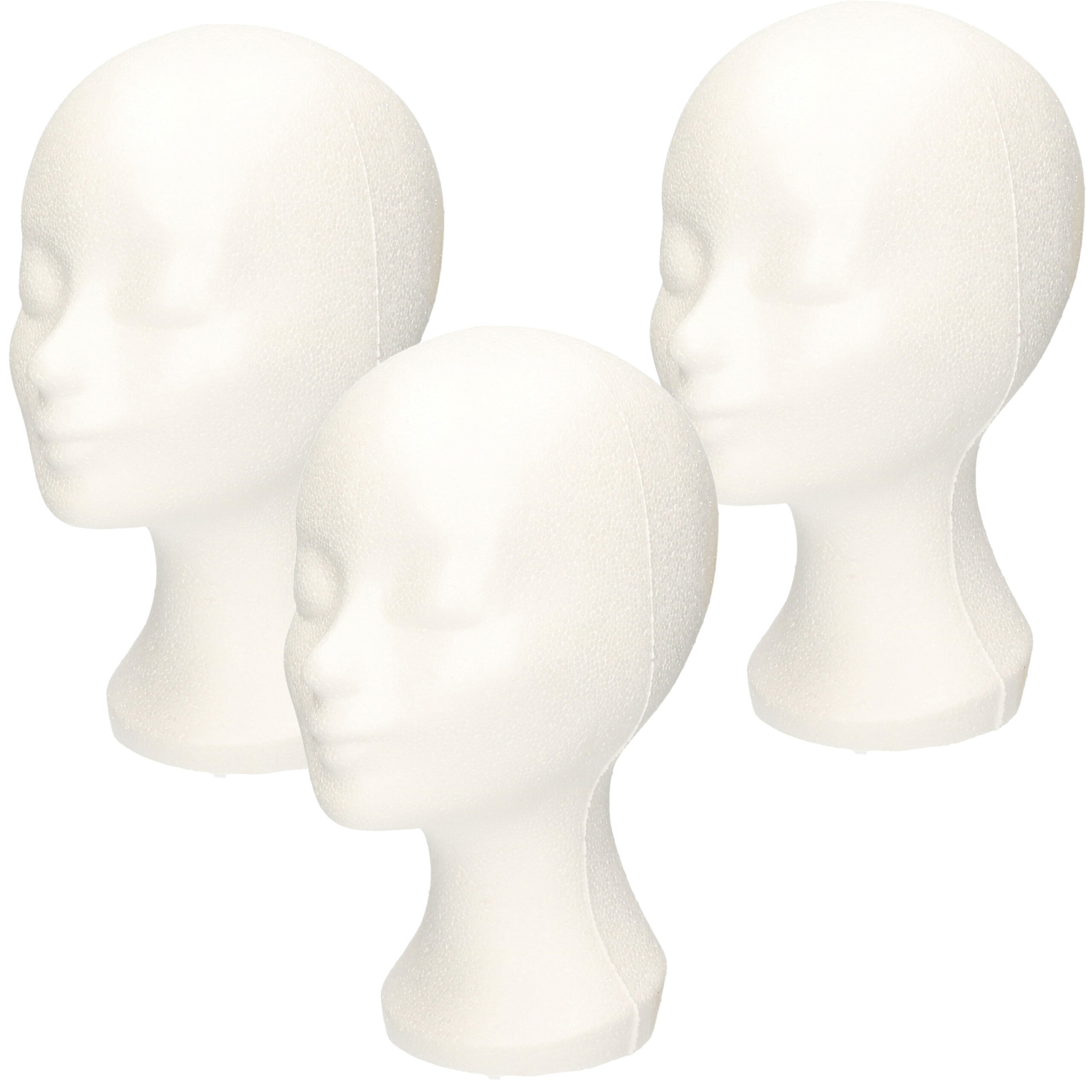 5x piepschuim paspop/pruiken display hoofd van 30 cm hoog. Elegant paspop hoofd gemaakt van piepschuim, dus deze voorkomt krassen in de etalage of fotostudio. Zeer geschikt als display in een etalage en tevens handig voor het tonen van pruiken, maskers, brillen of andere accessoires. Deze kop is gemaakt van lichtgewicht materiaal, waardoor deze gemakkelijk overal mee naar toe te nemen is. Handig voor bijvoorbeeld op de markt.