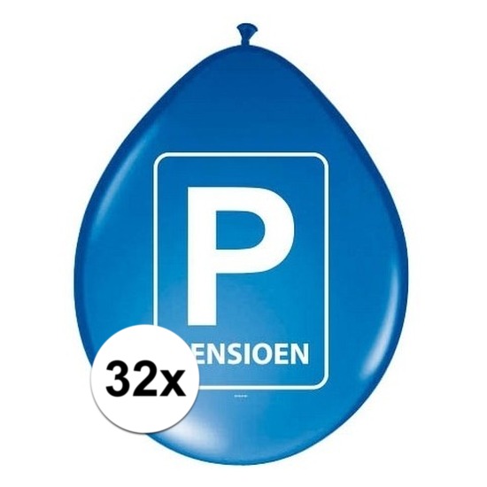 32x stuks Pensioen/met de VUT ballonnen van 27 cm feestartikelen versiering. Bijna met pensioen? Versier het huis, kantoor of een bureaustoel met deze ballonnen. Blauwe ballonnen met print van een verkeersbord en de tekst: PENSIOEN. De ballonnen zijn enkelzijdig bedrukt. Materiaal: latex. Formaat indien opgeblazen: ca. 27 cm hoog. Geschikt om te vullen met lucht. Vervroegde uittreding pensioen feestartikelen decoraties.