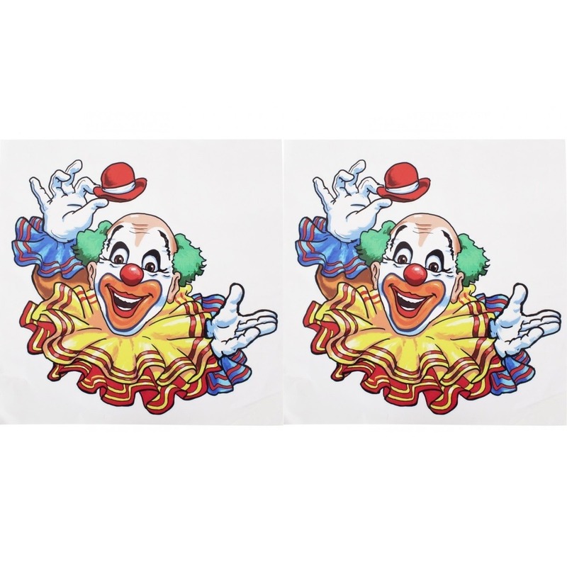 Raamsticker vrolijke clown 35 x 40 cm – 2x – Decoratiesticker – Carnaval/Circus themadecoratie