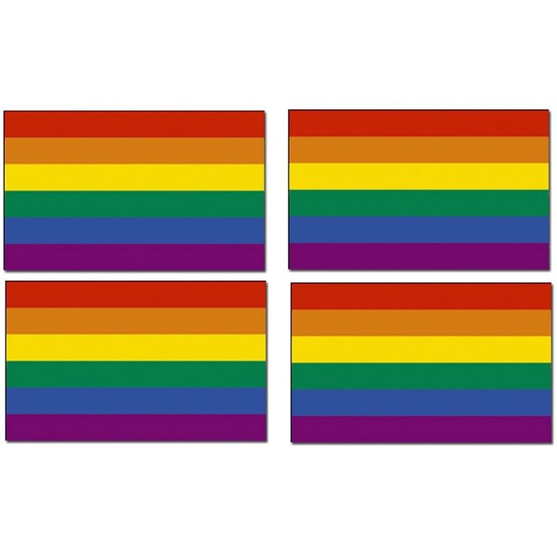 4x regenboog kleuren vlag met afmetingen van 90 x 150 cm. Polyester vlag met regenboog print. De vlag is inclusief 2 ophang ringen. Pride vlaggen decoraties, versieringen.