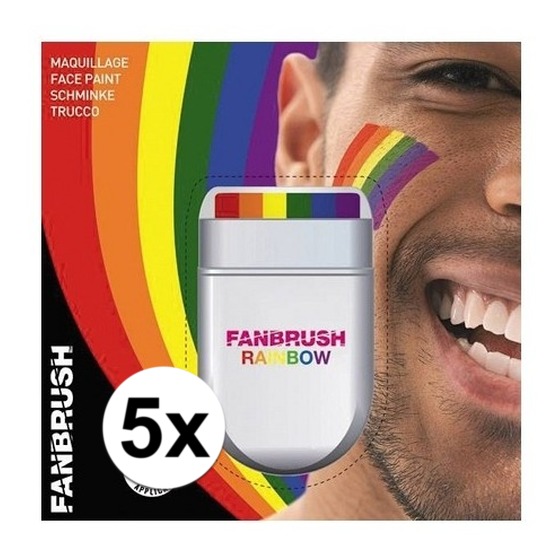 5x regenboog vlag schmink stift. Brede vlag. Handige schminkstift waarmee u direct een regenboog vlag op uw wang kunt schminken. Leuk voor tijdens de Pride. Voor dames en heren.
