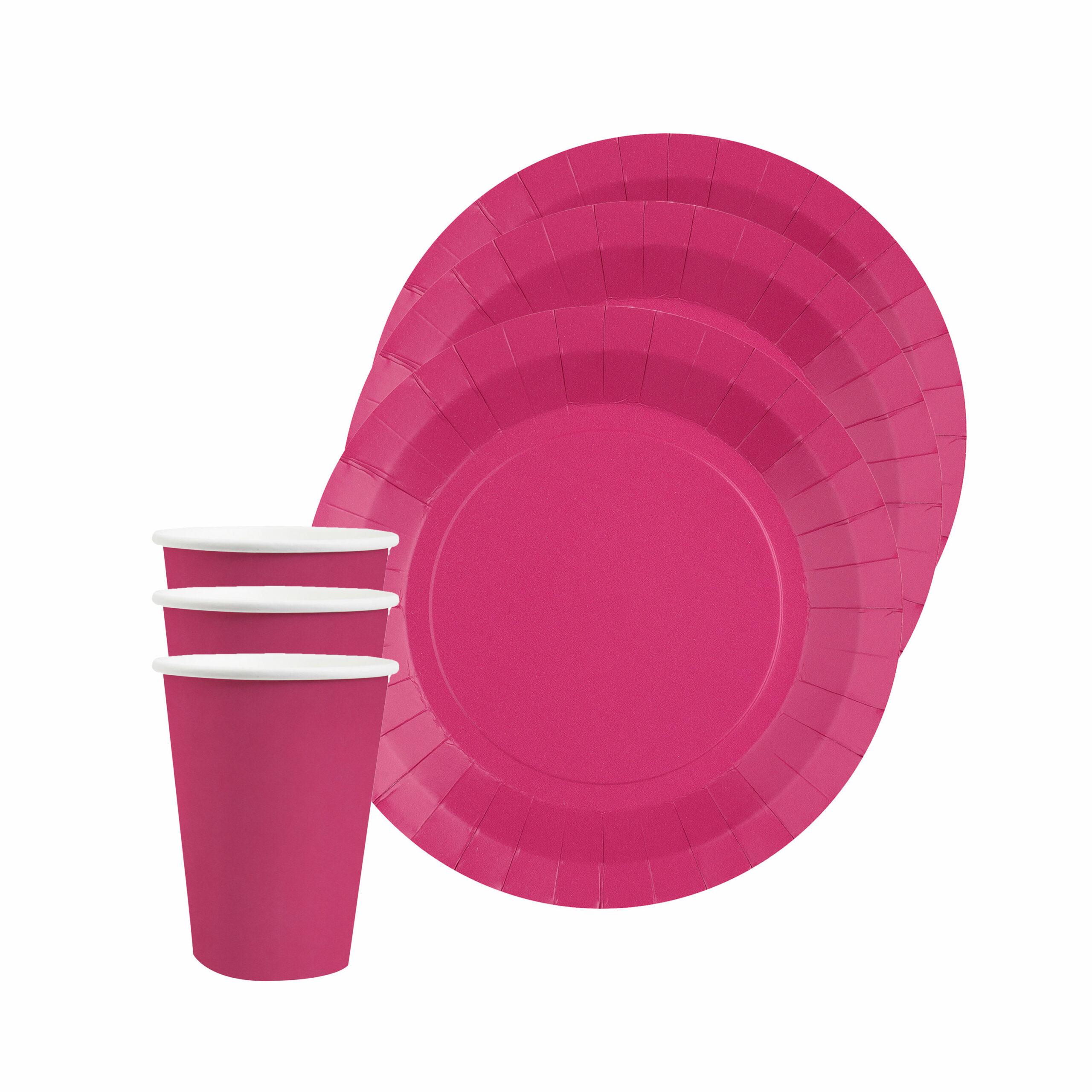 Santex feest/verjaardag servies set bestaande uit 10x feest gebaksbordjes/taartbordjes rond en 10x bekertjes in de kleur fuchsia roze. Wegwerp party bordjes en bekers van stevig karton, om ieder feestje mee compleet te maken.