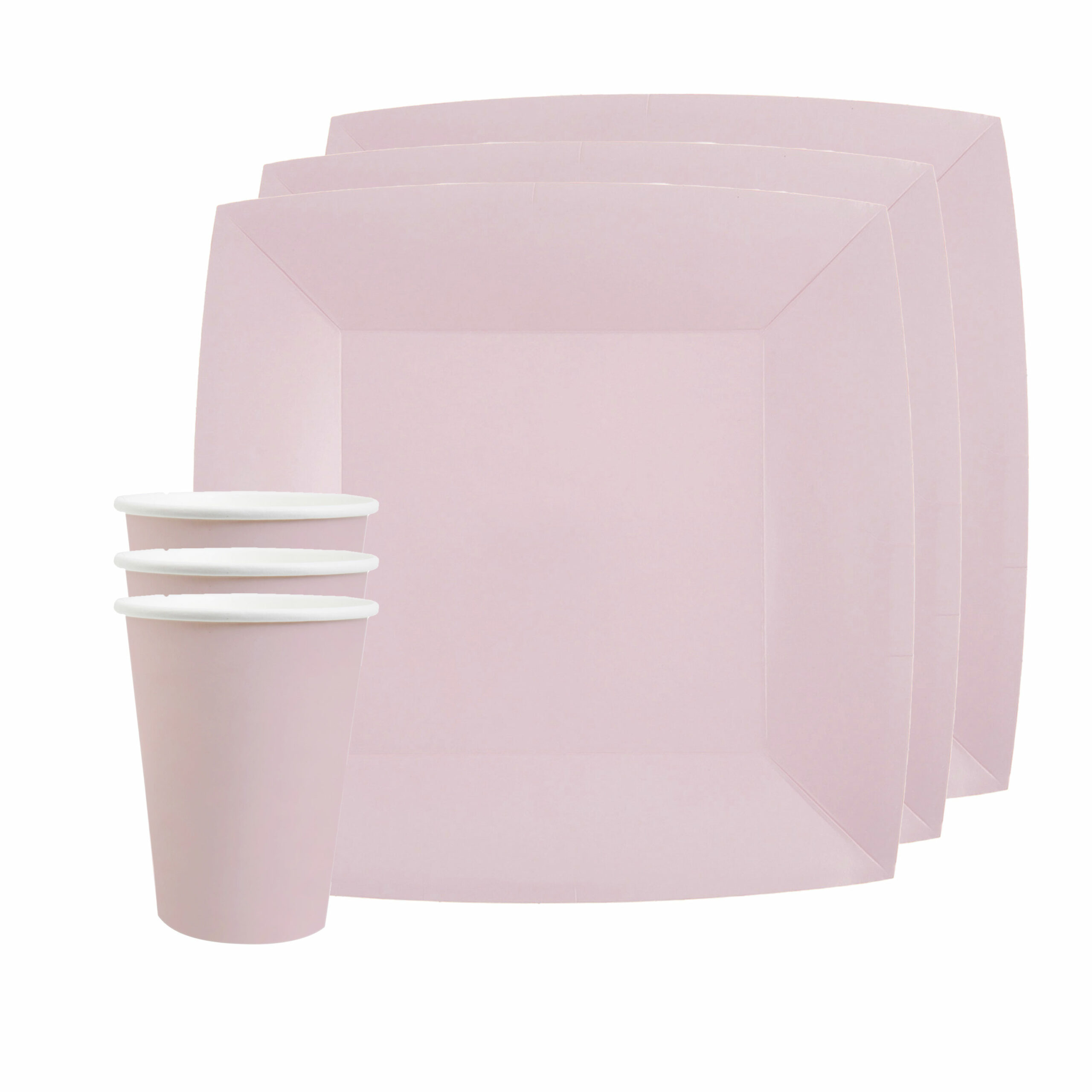 Santex feest/verjaardag/barbecue servies set bestaande uit 20x feest bordjes vierkant en 20x bekertjes in de kleur lichtroze. Wegwerp party bordjes en bekers van stevig karton, om ieder feestje mee compleet te maken.