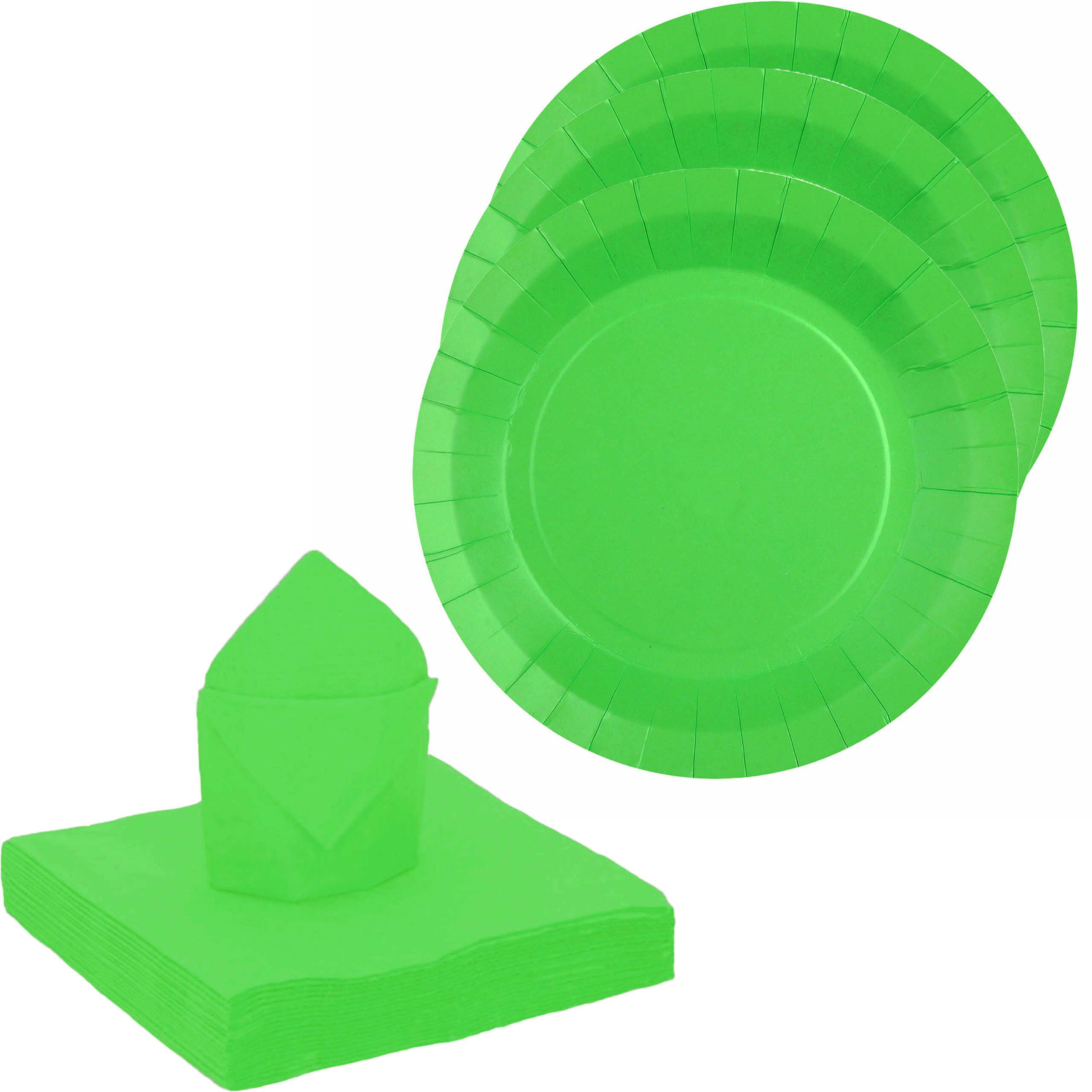 Santex feest/verjaardag servies set bestaande uit 10x feestbordjes rond en 25x groot formaat servetten in de kleur felgroen. Wegwerp party bordjes van stevig karton, om ieder feestje mee compleet te maken. De servetten zijn van hoge kwaliteit stevig papier.