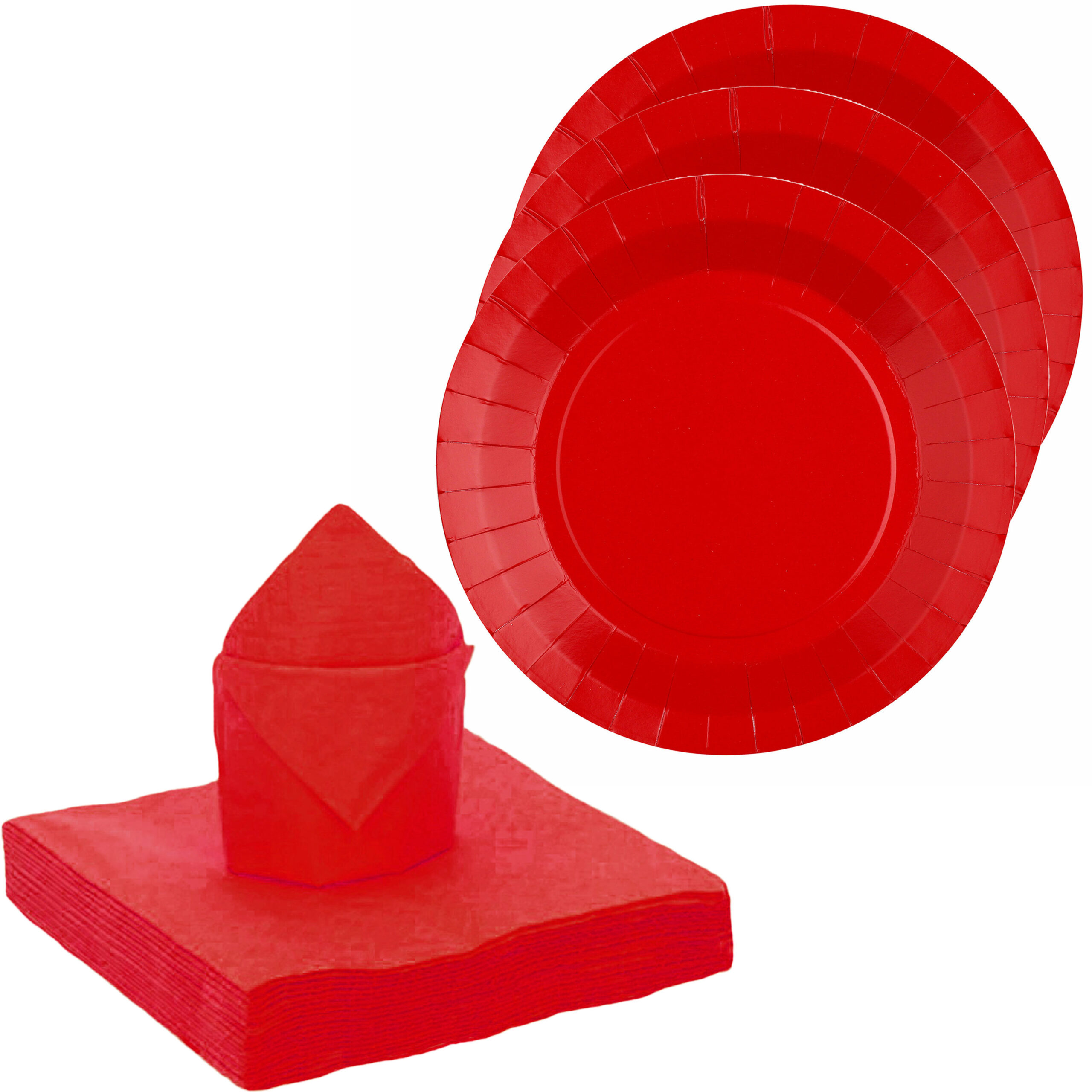 Santex feest/verjaardag servies set bestaande uit 10x feestbordjes rond en 25x groot formaat servetten in de kleur rood. Wegwerp party bordjes van stevig karton, om ieder feestje mee compleet te maken. De servetten zijn van hoge kwaliteit stevig papier.