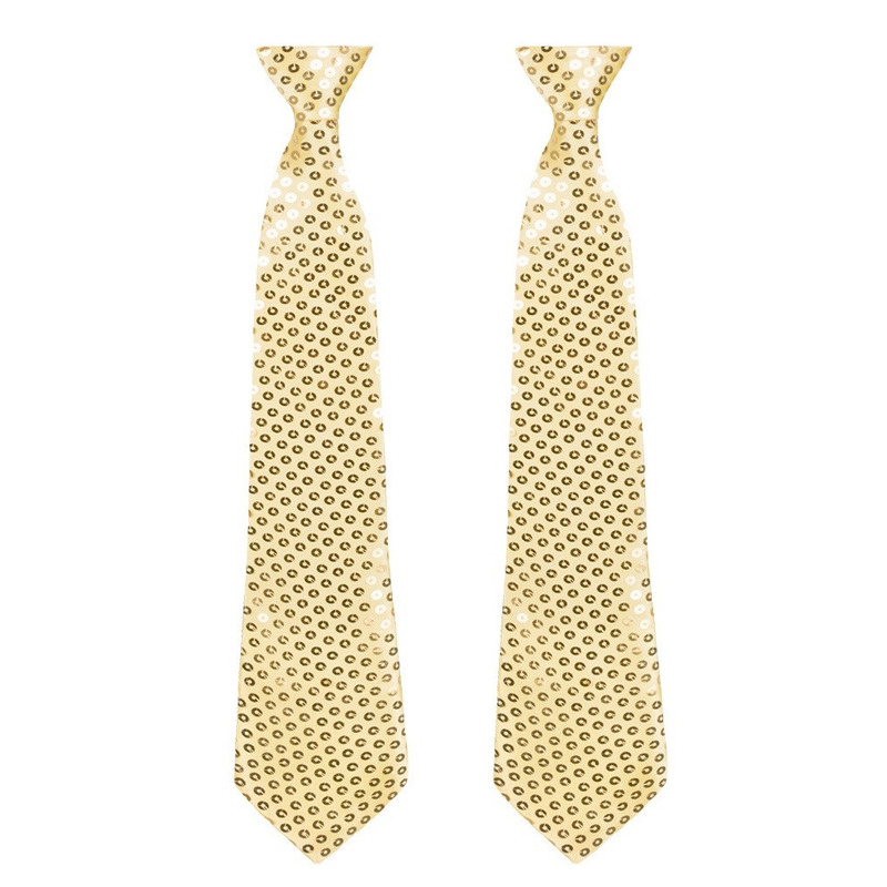 Set van 2x gouden pailletten stropdassen 40 cm. Gouden glitter dassen met pailletten. De lengte van een gouden stropdas is ongeveer 40 cm. Glitter thema verkleed stropdas. U ontvangt 2 stuks.