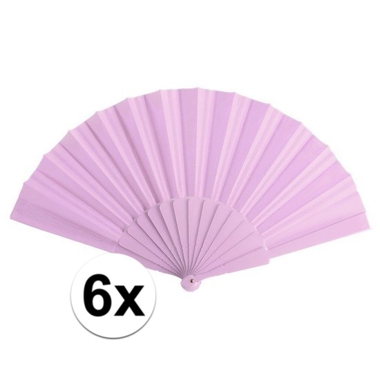 6x zomerse Spaanse handwaaier in de kleur lichtroze. Handige uitvouwbare waaier voor directe verkoeling op warme dagen.