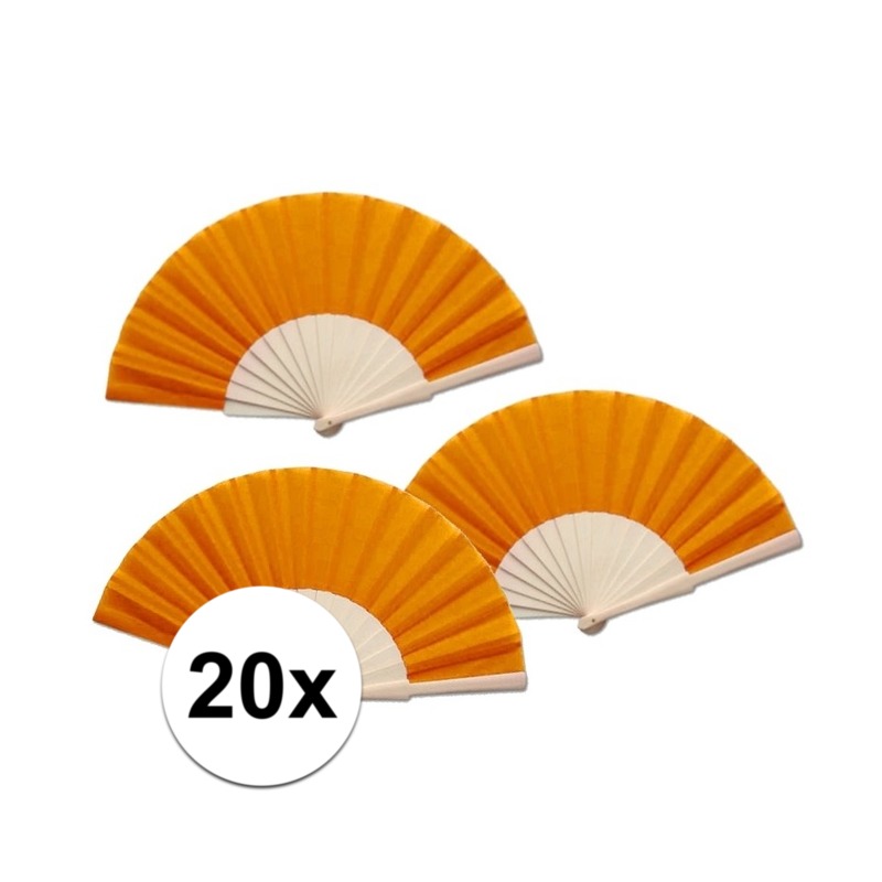 20 stuks spaanse waaier, oranje. Deze Spaanse waaier zorgt voor verkoeling tijdens de warme zomerdagen. Deze oranje waaier is gemaakt van hout en heeft een formaat van ca. 42 x 23 cm. De handwaaier is ook perfect te gebruiken als verkleedattribuut.