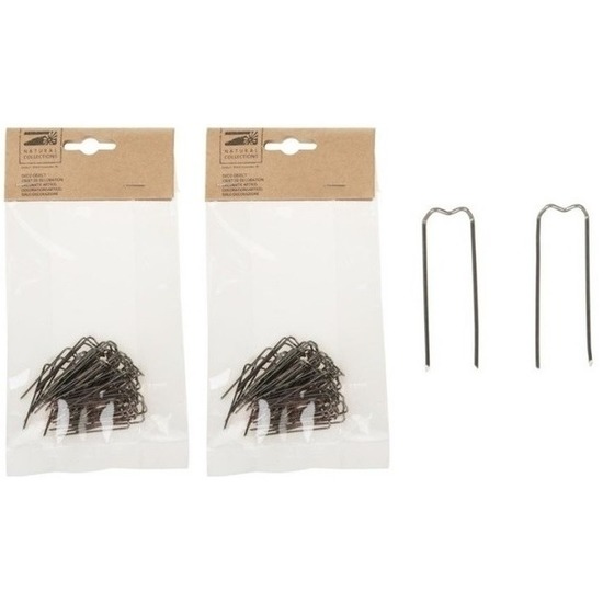 Steekkrammen klemmetjes. Maak je kerstdecoraties gemakkelijk en stevig vast met deze steekkrammen klemmen! Dit zakje bevat 100x stuks steekkrammen (ook bekend als patentkrammen), ideaal voor het bevestigen van materialen in kerststukjes, op kransen of andere decoratieve ondergronden.De krammen hebben een formaat van ongeveer 1.5 x 4 cm, zodat je ze kunt aanpassen aan je specifieke behoeften voor verschillende soorten kerstdecoraties. Of je nu verse takken, kunstmatige bloemen, of andere versieringen wilt bevestigen, deze klemmen zorgen voor een stevige en betrouwbare bevestiging.
