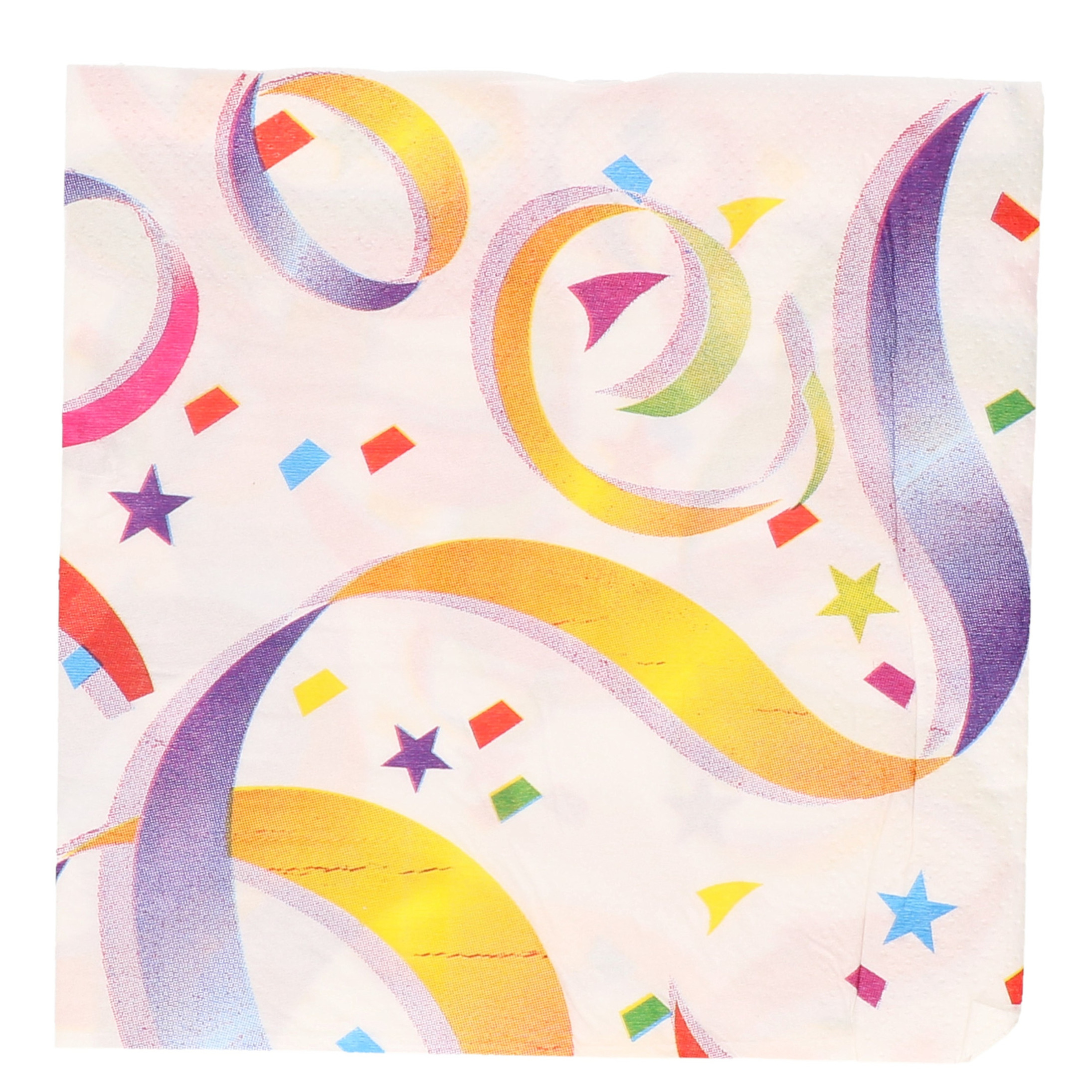 32x Kleurrijke slierten verjaardag feest thema servetten 16 x 16 cm, papieren wegwerp servetjes.
