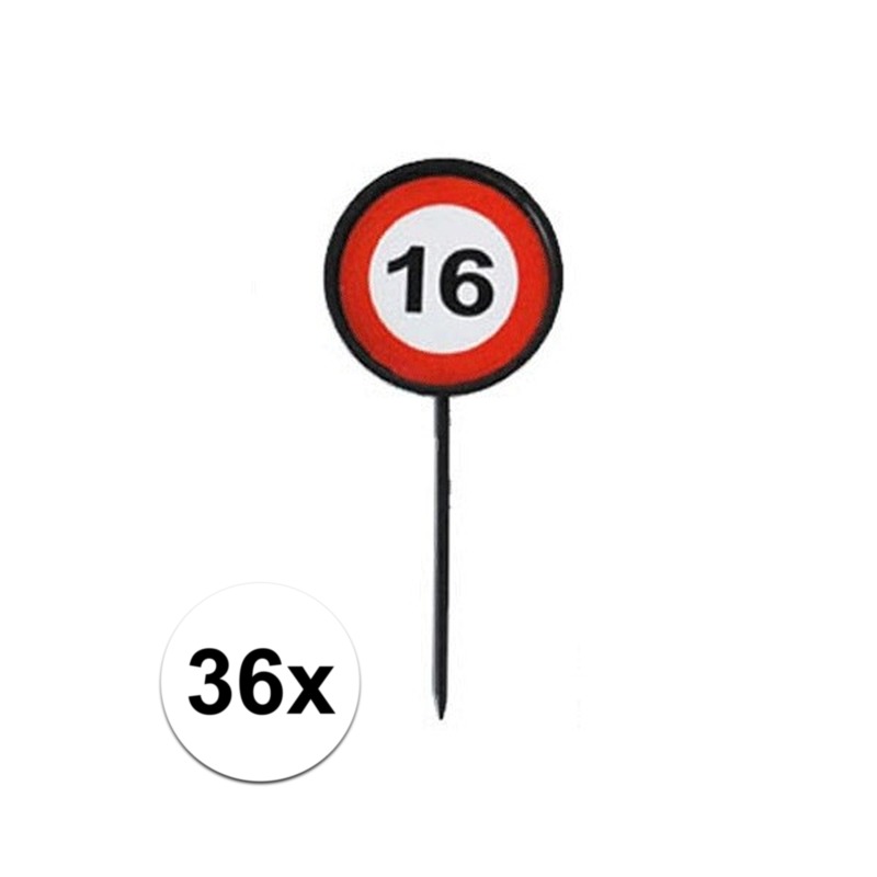 36 stuks verjaardagsfeest leeftijd cocktailprikkers. Maak het verjaardagsfeest extra speciaal met de Verjaardagsfeest Leeftijd Cocktailprikkers! Deze set van 12 cocktailprikkers in het thema van een stopbord is perfect voor iedereen die 16 wordt. De prikkers, met het opvallende stopbordontwerp, voegen een speelse en feestelijke sfeer toe aan je hapjes en drankjes. De prikkers zijn ongeveer 7.5 x 3 cm en gemaakt van plastic. Met deze Verjaardagsfeest Leeftijd Cocktailprikkers maak je de 16e verjaardag een stuk vrolijker en opvallender! Perfect voor het serveren van hapjes en het geven van een feestelijke flair aan je feestje.