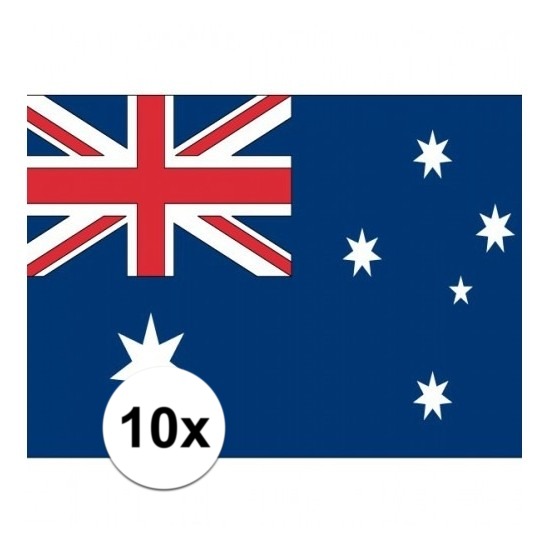 10 stuks vlag van Australie stickers voor fans en supporters. Formaat landen vlag stickers is ongeveer 7,5 x 10 cm. Geschikt voor binnen en buiten gebruik. Landenvlaggen artikelen van alle landen van de wereld.