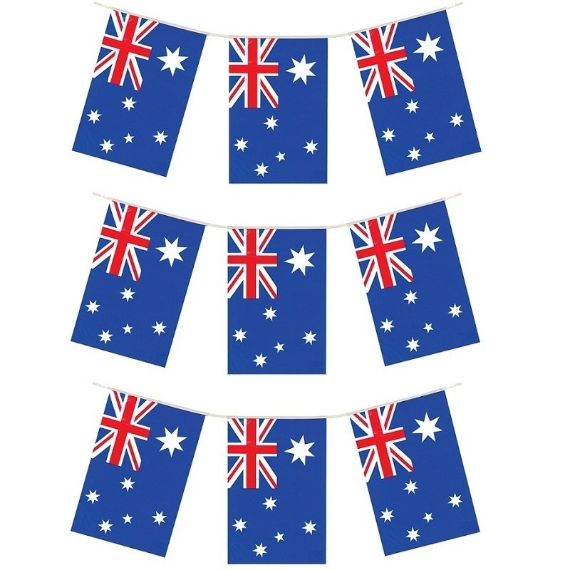 3x vlaggenlijnen van Australie met 11 vlaggetjes. Het formaat van deze Australie vlaggenlijn is 4 meter. Materiaal: kunststof. In de winkel vindt u naast deze Australische vlag nog meer Australie versiering en feestartikelen. Australische vlag landen thema decoratie. Australie fans/supporters artikelen voor bijvoorbeeld tijdens het EK/WK voetbal.